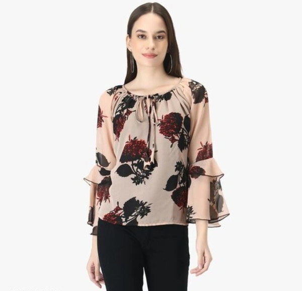 Ruffle sleeves top Fabric: Georgette Sleeve Length: Long Sleeves Pattern: Printed Multipack: 1 Sizes: S (Bust Size: 32 in, Length Size: 23 in) XS (Bust Size: 30 in, Length Size: 23 in) L (Bust Size: 36 in, Length Size: 24 in) M (Bust Size: 34 in, Length Size: 24 in)