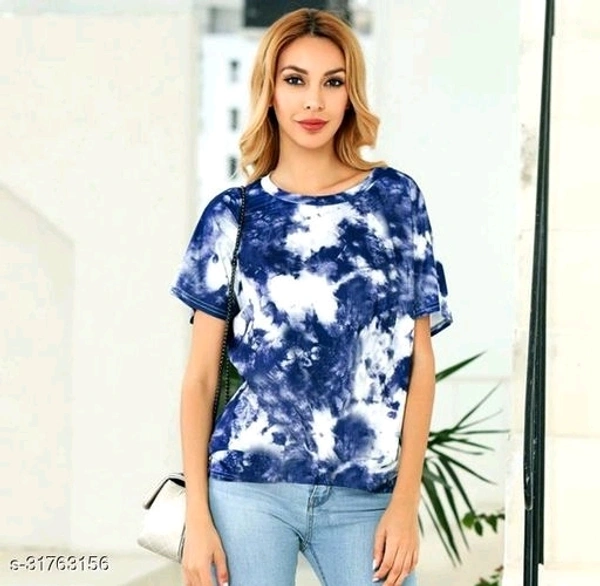 Tie dye Women's Tshirt Fabric: Cotton Sleeve Length: Short Sleeves Pattern: Self-Design Multipack: 1 Sizes: S (Bust Size: 34 in, Length Size: 24 in) XL (Bust Size: 40 in, Length Size: 25 in) L (Bust Size: 38 in, Length Size: 25 in) M (Bust Size: 36 in, Length Size: 24 in) Care Instructions: Machine Wash Fit Type: Regular Fit Type: Regular Fit Fabric: Cotton Blend Sleeve Type: Half Sleeve Neck Style: Round Neck Pattern: Solid